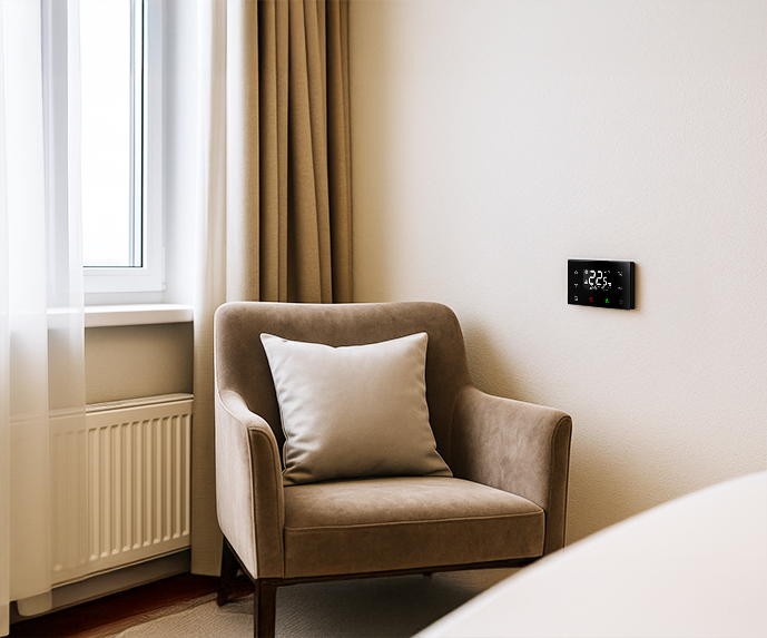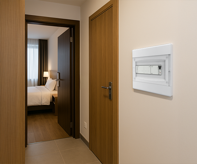 Lighting in a hotel room significantly influences guest satisfaction. We offers full lighting automation from basic On/Off control to mood-based dimming and intelligent DALI lighting scenes. Lights can respond to occupancy, card insertion, or time-based rules. Hotels can design custom welcome lighting or night pathways, ensuring the room always feels inviting, safe, and energy efficient.