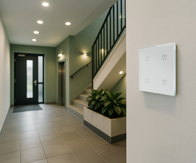 Automatic lighting control ensures comfort and energy savings across all shared spaces. Corridors, staircases, entrance lobbies, garages and parking areas, outdoor and façade lighting can operate based on motion, time schedules or ambient light levels. This reduces unnecessary power consumption while improving safety.
