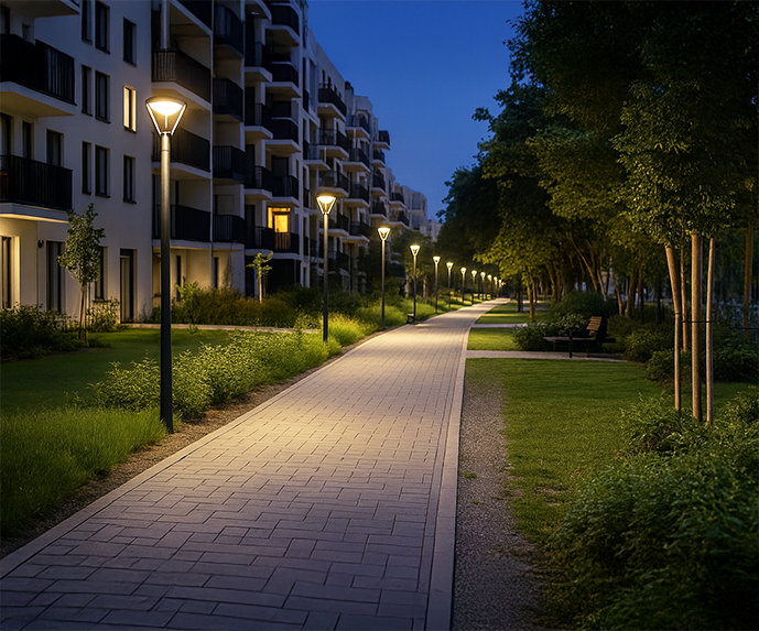 iNELS enables central control and automation of streetlights, park lighting, pedestrian paths, underpasses and façades. Lights can react to time schedules, motion sensors or ambient light levels, significantly reducing energy consumption and light pollution.