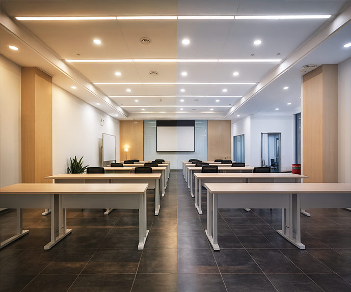 Transform your offi ce to suit your needs throughout the day. In the morning, bright white light enhances focus and productivity, helping you stay energized. As the day winds down, switch to soft, warm lighting for a more relaxed and comfortable atmosphere.